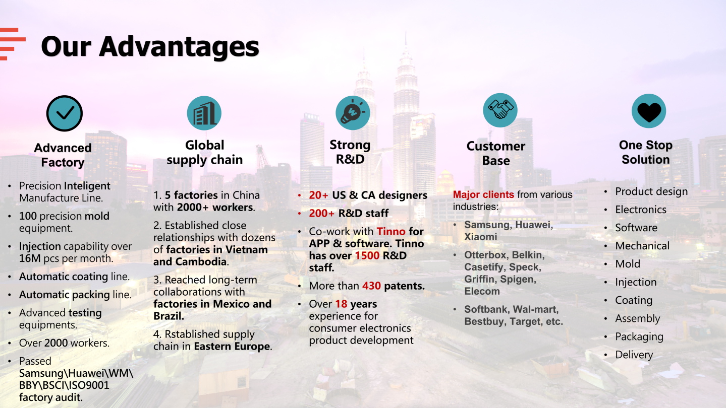BLOOMTECH providing customized global supply chain services to our clients. With our focus on industries such as VR/AR, new energy vehicle accessories, healthcare, and the expanding 3C product market including small appliances and smart home products, we have design and research centers in Canada, the United States, Hong Kong, and Mainland China.